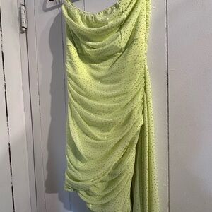 AKIRA Silver Rhinestone Lime Green Draped Dress