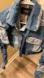 Stylish cropped jacket with a two-tone denim design. Features frayed edges and button details. Perfect for casual wear. Scrunched sleeves. Size small. Will fit up to size medium. Depending on body figure. Stretchy arms. By AKira.