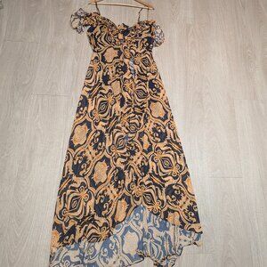 AKIRA Women's Black and Yellow Maxi Dress Ruffle sleeve flirty baroque print