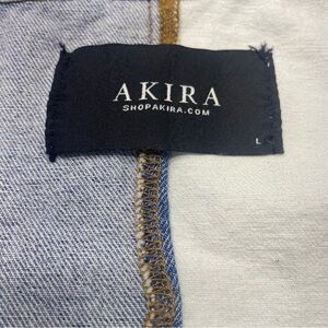 AKIRA Women’s Blue and White Patchwork Denim Jacket LG Light Distressing RUGGED