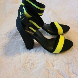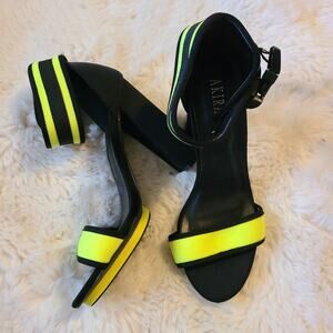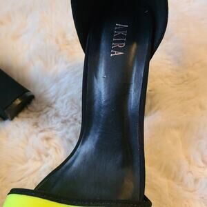 AKIRA yellow /black heels Ankle buckle strap Pre-owned good condition with minor signs of wear