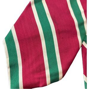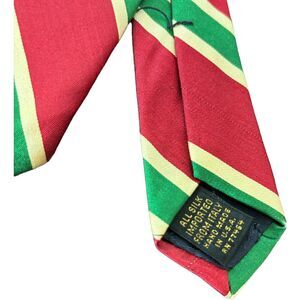 AKM Red Green Gold Striped Italian Silk Hand Made Tie