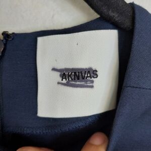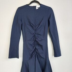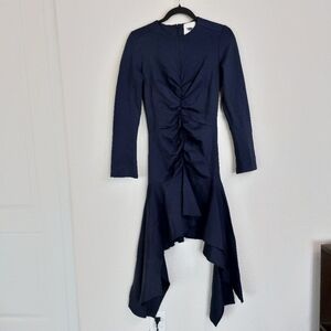 AKNVAS Ruched Blue Long Sleeve Draped Asymmetrical Midi Dress Size 0