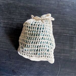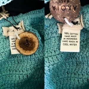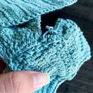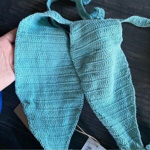 New with tags, coming loose at one end of the bottoms. If you’re good at crocheting it could be fixed. Comes with swim bag.