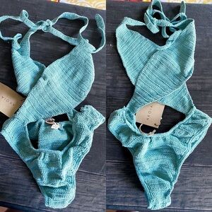 AKOIA SWIM Swimsuit Riu Twist Crochet One-Piece Backless Blue M NWT