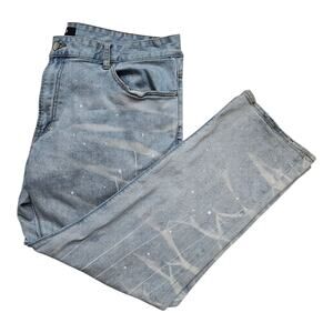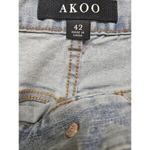 AKOO Brand Jeans Light Wash Distressed Straight Leg Denim Mens Sz 42 Streetwear