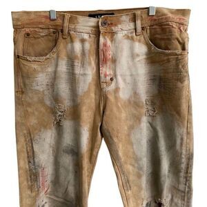 AKOO Delinquent No Rivals Denim Jeans Men's Khaki Distressed Grunge
