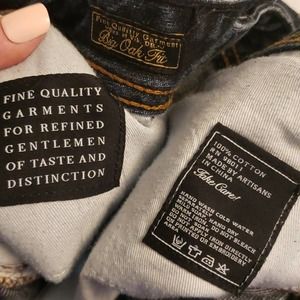 AKOO Big Oak Fit slim cut jeans in darker blue denim. 100% cotton. Sz 38. 18.5" across waist flat and 41.5" long with 32.5" inseam. Great condition. Nonsmoking home with awesome pugs.