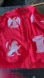 Stylish red jacket with intricate white embroidery. Features unique designs on the front and sleeves.