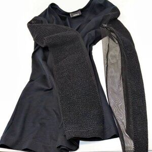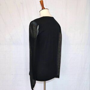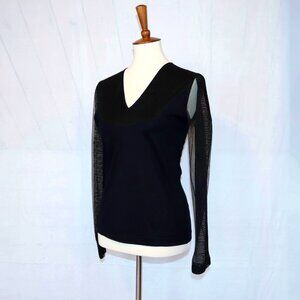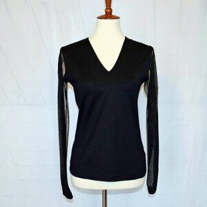 AKRIS 8 Sheer Black Mesh Organza Long Sleeve Illusion Stretch Blouse Top