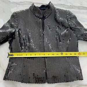 Condition: New without tags, tried on numerous times to see if it fit, some sequins got stuck, fell off at sleeve slit & maybe other areas or loose threads, back collar faintly dirty from hanger.
