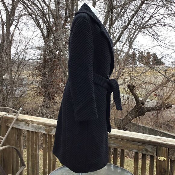 A-K-R-I-S Black Wrap Coat Overcoat Belted Chevron Design New Size 14