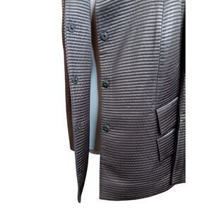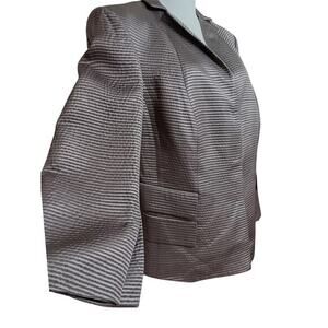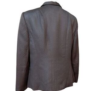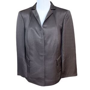 AKRIS Blazer Jacket 16 Wool Blend Satin Embossed Dark Gray Career Office Luxury