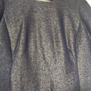❤️AKRIS Blue Gray Metallic Half Sleeve Textured Silk Knee-Length Cocktail Dress