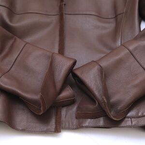 - Lambskin leather blazer style jacket jacket in a rich brown color.
