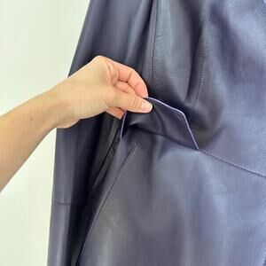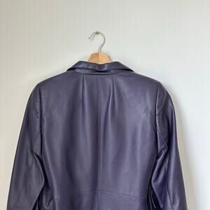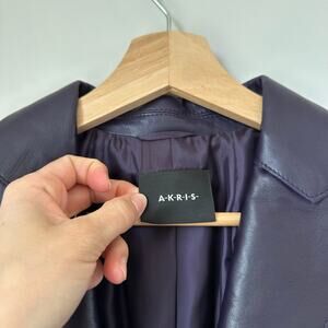 AKRIS Lamb Nappa Leather Collared Blazer Purple 12