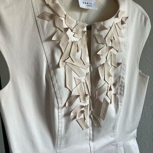 AKRIS PUNTO | Crew Neck Knee Length Embellished Design Dress in Ivory | Size 8
