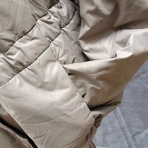 in good overall condition. does have mark on back of shoulder area. no holes rips or tears. no size tag present, refer to measurements. review all pics.