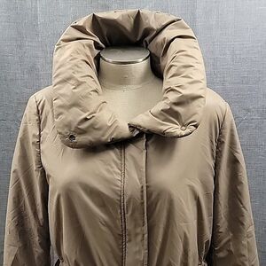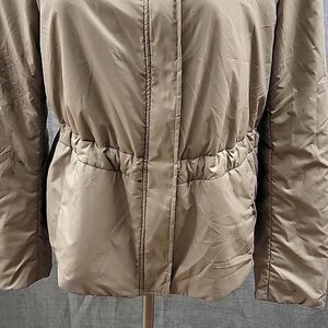 AKRIS PUNTO Jacquard Beige Lightweight Puffer Jacket Drawstring Waist SZ M