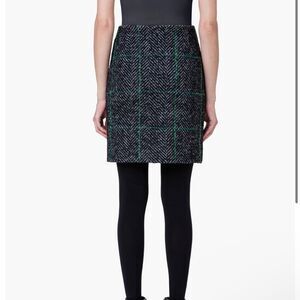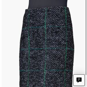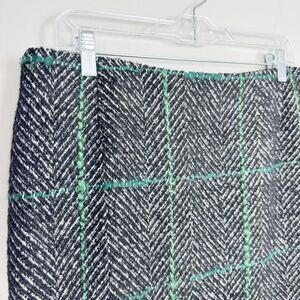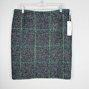 Stunning windowpane check Herringbone pencil skirt by Akris Punto. Color is called Black Slate - black and white herringbone print with green accents in the windowpane design. Zipper and button closure. Wool blend. Lined. Brand NWT. Women’s US size 10.