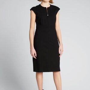 Used excellent condition AKRIS PUNTO Cap-Sleeve Zip-Front Seamed Dress, Black in size M