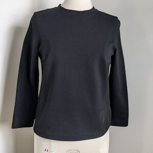 AKRIS Ponte Zip Fitted Black Sweater Top M Knit Minimalist Fine Gauge Designer