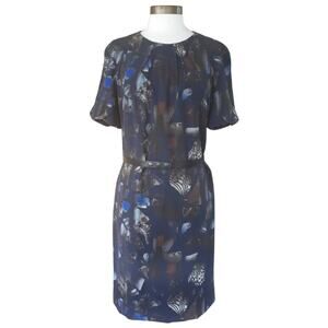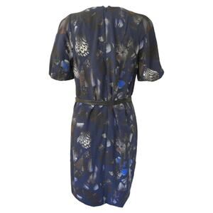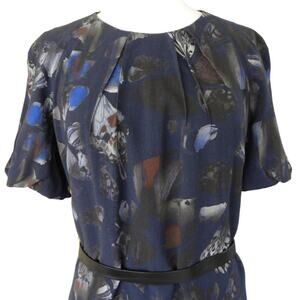 AKRIS Punto Belted Dress Navy Multi Butterfly Print Wool Crepe