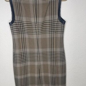 AKRIS Punto dress plaid at knee sz 8 leather trim sleeveless