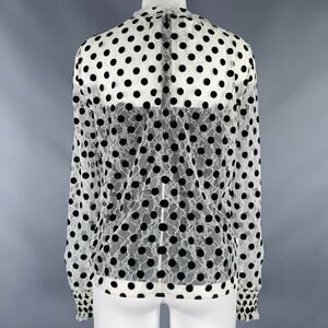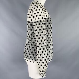 AKRIS Size 4 Off White Black Viscose Blend Polka Dot Collarless Blouse