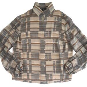 AKRIS Stripe & check silk georgette shirt F 48 US 16