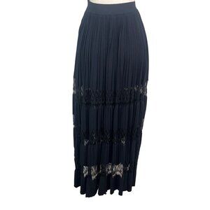 ALAÏA Long Voluminous Pleat And Lace Skirt in Noir 36 2 New Womens Maxi Knit