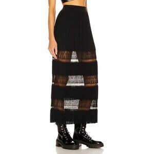 Accordion pleats release generous volume into this pull-on skirt finely knit from a silk-kissed blend, while lace insets reveal subtle glimpses of skin. Sheer lace inserts lend a touch of signature Alaïa allure to this maxi skirt. It's made from black knit fabric with a touch of silk blended in, and is structured with rippling accordion pleats.