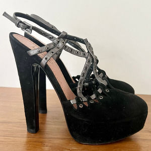 ALAÏA Suede Studded Platform Stiletto High Heels Shoes Black Women's Size 36.5