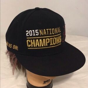 New without tags (old stock) Alabama Crimson Tide 2015 NCAA National Champs ~ Locker Room Cap Embroidered Logos By Nike Black in color Snapback Mens Adult ONE-SIZE w adjustable strap Baseball Cap / Hat Condition: New without tags ~ old stock. NEVER WORN. Refer to pics for more condition detail.