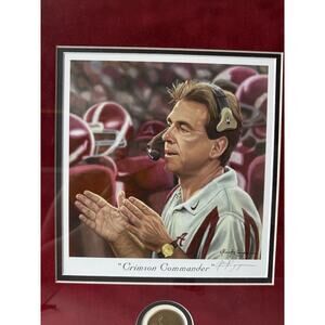 ALABAMA FOOTBALL DANIEL MOORE THE LEGEND NICK SABAN MINI PRINT FRAMED with coin
