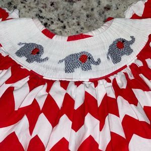 ALABAMA ROLL TIDE Size 6M Red/White Chevron Smocked Dress and Pants by BABEENI