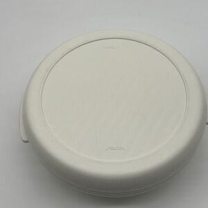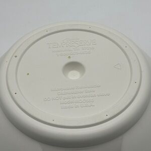 The Aladdin Tempreserve Insulated Hot Cold Round Travel Casserole Carrier is a beige plastic container with a lid, designed to keep food hot or cold during travel. It has a round shape, an item diameter of 11 inches, and a height of 4.5 inches. The casserole carrier is microwaveable and easy to clean, making it convenient for transporting and reheating dishes. This model, IQC560, is made in the United States by the brand Carrier. It includes the Pyrex dish also
