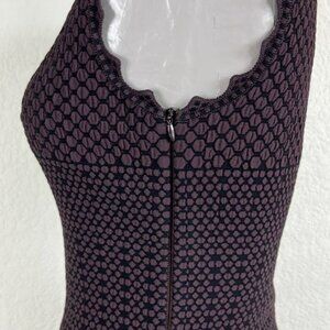 ALAIA Knit Scalloped Diamond Print Drop Waist Knee Fit Flare Sleeveless Dress