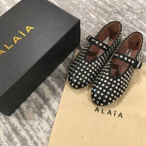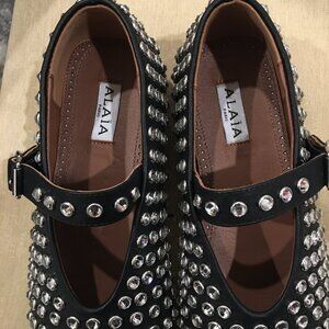 ALAIA Leather Mary Jane Flats With Allover Studs 37