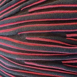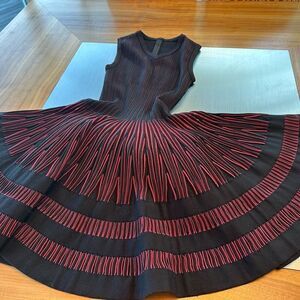 ALAIA red and black sleeveless dress. Size 40. Fits like a size 6. Beautiful swing detail. So flattering and slimming. The lining is silk. The dress itself is 70% fleece wool, 10% silk and 10% nylon. Back zipper closure. The bust measures 24 inches. The length is 36 inches The waist is 24 inches The skirt part measures 17 inches and the material is stretchy. Great condition.