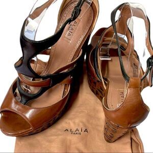 ALAIA Paris Leather Wedge Sandals in good pre-owned condition with a few minor flaws - see photos. ( please forgive lack of pedicure )