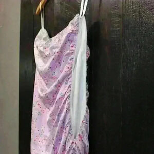 ALAMOUR THE LABEL Silky Sexy Strapless Ruched Side Purple Floral Mini Dress Women Large