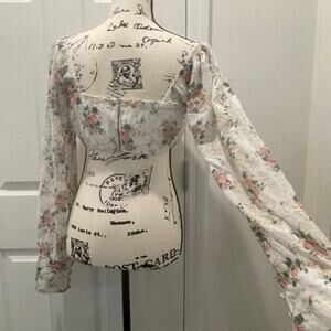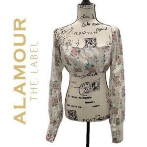 Embrace your boho-chic style with the Alamour The Label Cropped Top in size M. This stunning piece features elegant puff long sleeves, perfect for adding a touch of romance to any outfit. The top is adorned with a delicate floral pattern set against a soft beige background, combining timeless elegance with modern aesthetics. Crafted from a lightweight, breathable material, it ensures comfort without compromising on style. The cropped design and square neckline offer a flattering fit, making it a versatile addition to both casual and dressy wardrobes. Ideal for pairing with high-waisted jeans or skirts, this top is a must-have for any fashion-forward individual seeking to showcase a unique boho-inspired look.Excellent Condition