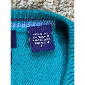 ALAN FLUSSER Cotton/Cashmere V Neck, Sweater, size Large, in very good condition. Beautiful Teal color.
