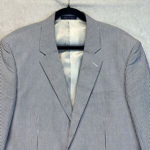 ALAN FLUSSER Blazer Suit Jacket Men's Size 46L Navy White Striped Notched Lapel