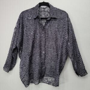 ALANI THE GRAY SHEER BLOUSE, SIZE S?