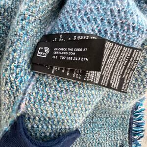 The stunning craftsmanship and extraordinary attention to detail are hallmarks of the Alanui brand, and this piece takes all of that to a new level. This brushed wool blend Jacquard knit cardigan is mid-heavy weight and very warm. The changing patterns and fabric styles provide for interesting tactile exploration, and the colors of the famed Northern Lights displayed across the back are stunning. This is not a piece to wear if you're wanting to slip in unnoticed and hang in the background. Rare, unique. artisan piece.
