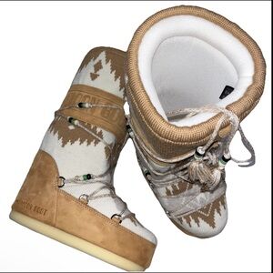 ALANUI X MOON BOOT Icon boots knit tan cream EU 38 US 7-8 sweater boho bead NEW