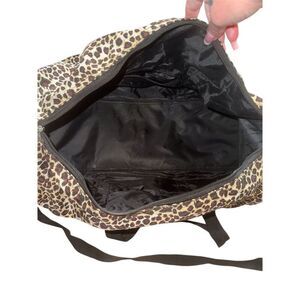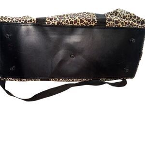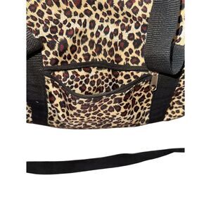 Keywords: ALAZA, duffle bag, leopard print, travel bag, unisex, large duffle, shoe compartment, multiple pockets, durable straps, pre-owned, high-quality fabric, travel accessory, shoulder strap, spacious compartment, travel occasions.