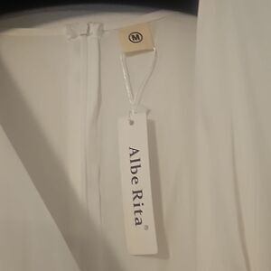 New with tags Albe Rita woman swing skater Dress long sleeve waist tie ruffle mini white Size M